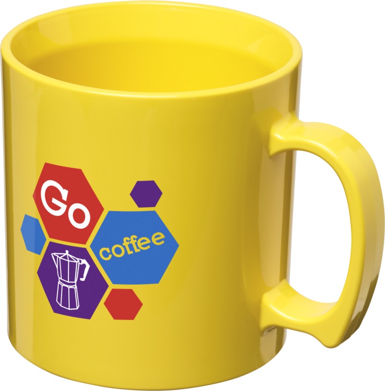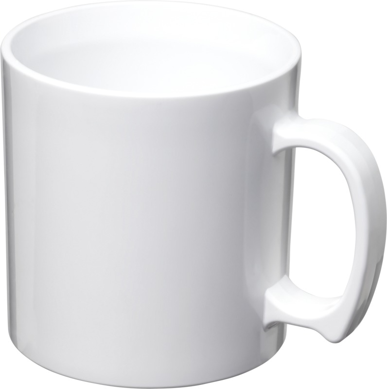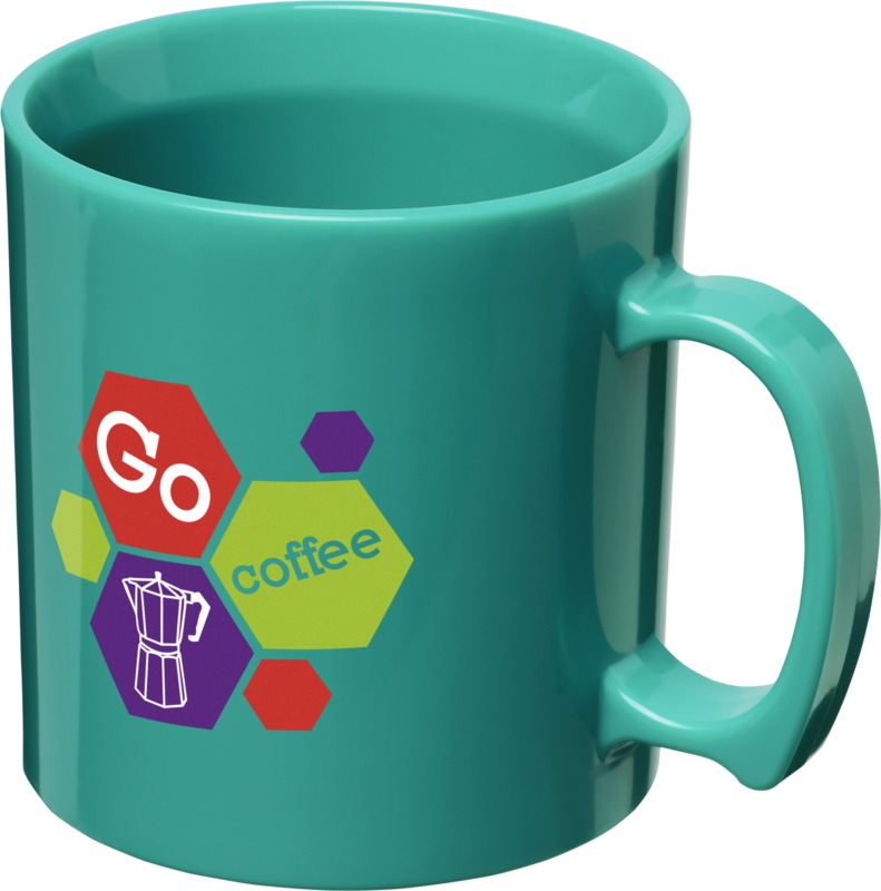 This 300 ml plastic mug offers a practical item for promotional campaigns and corporate gifting. It is a durable, single-wall mug made in the UK. Its simple design makes it ideal for showcasing your company logo clearly.