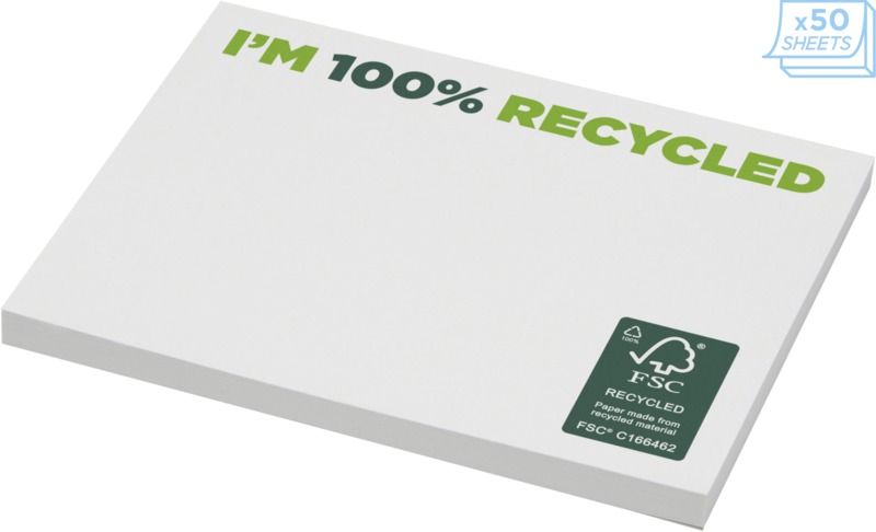 Gain daily brand exposure with Sticky-Mate® recycled sticky notes. These 100×75 mm pads use 80 g/m2 self-adhesive recycled paper, with your brand printed in full colour on every sheet. They are FSC® certified, showing responsible sourcing for your brand.