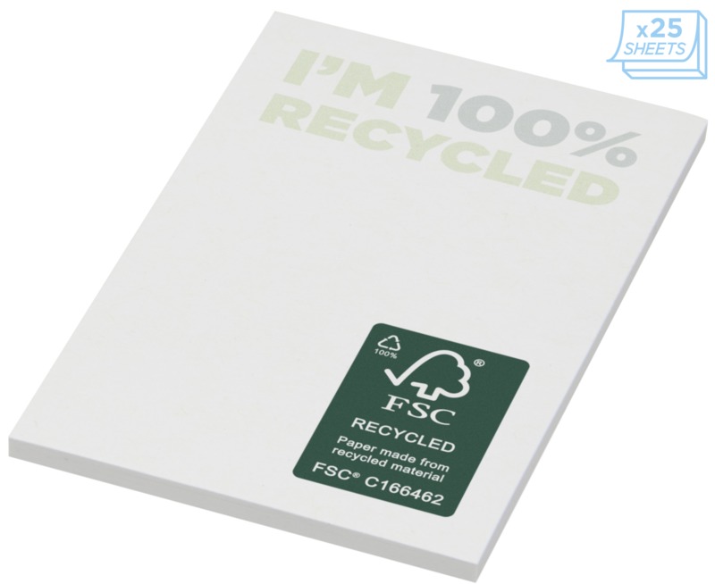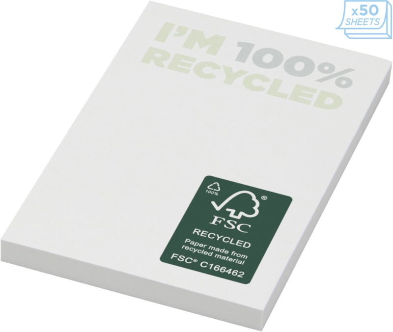 Keep your brand visible with Sticky-Mate® recycled sticky notes. These 50 x 75 mm pads use 80 g/m2 FSC® certified recycled paper, allowing full colour printing on every sheet. Available with 25, 50, or 100 sheets, they offer a practical way to promote your brand.