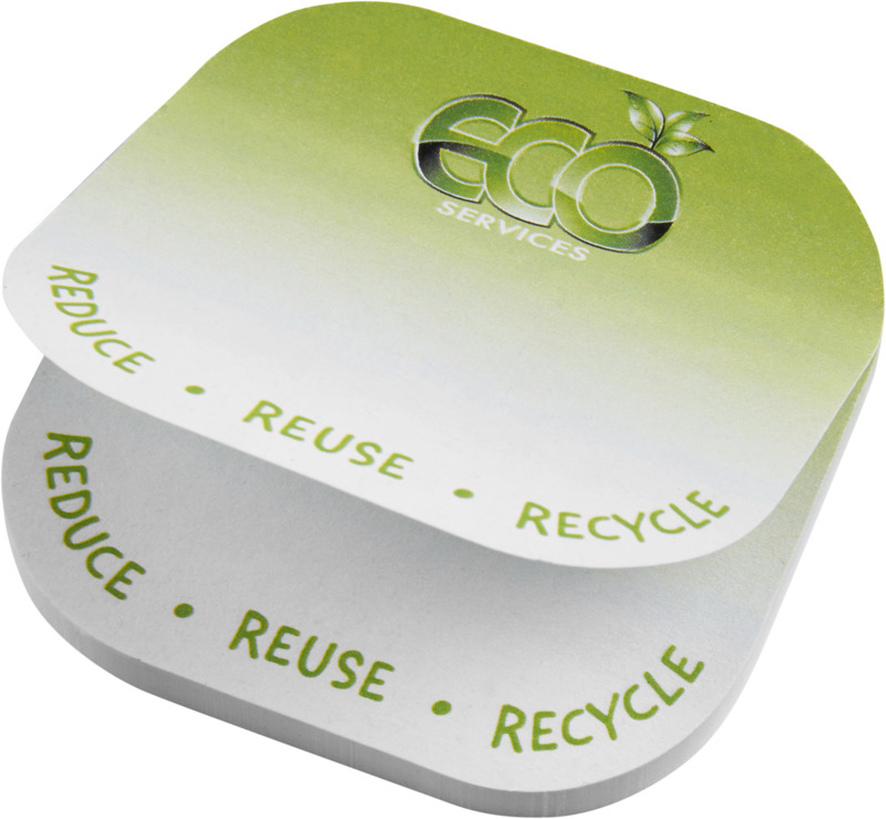 Promote your brand clearly with Sticky-Mate® recycled sticky notes. Each pad has 50 square sheets with rounded corners, made from 80 g/m2 recycled paper. Full colour printing on every sheet makes sure your brand message stands out for any campaign.