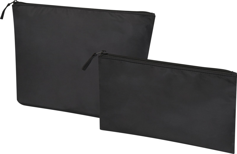 Keep travel essentials tidy with the Swift GRS recycled toiletry bag set. It includes two pouches made from GRS certified recycled polyester, offering a large 32 x 21 cm bag and a small 23 x 13 cm bag. This durable set provides good branding space for promotional activities.