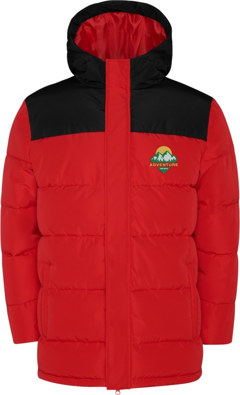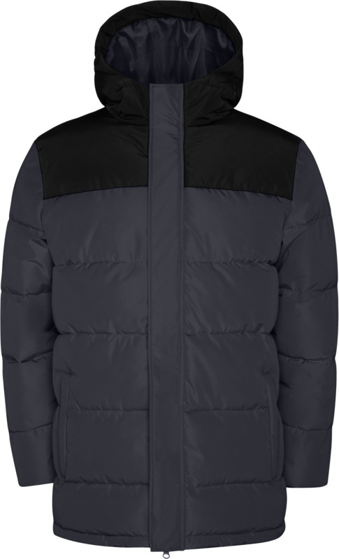 • This padded jacket features a fixed hood for added protection.