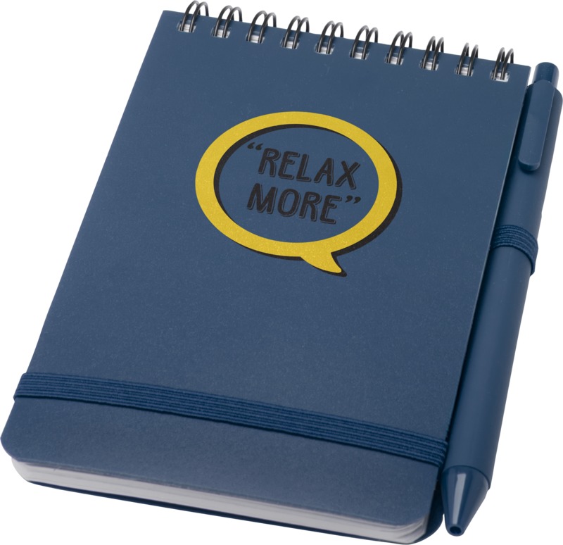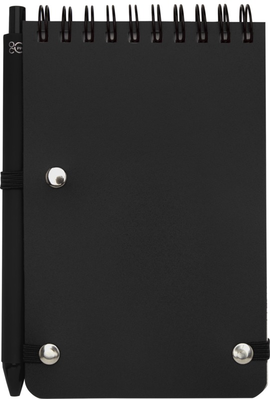 This Thalaasa A6 hard cover notebook and pen set offers a practical, environmentally aware item. Both the notebook and ballpoint pen are made from ocean-bound recycled plastic. The A6 notebook has 80 lined sheets, an elastic closure, and a pen loop. This Thalaasa set suits general promotional activities.