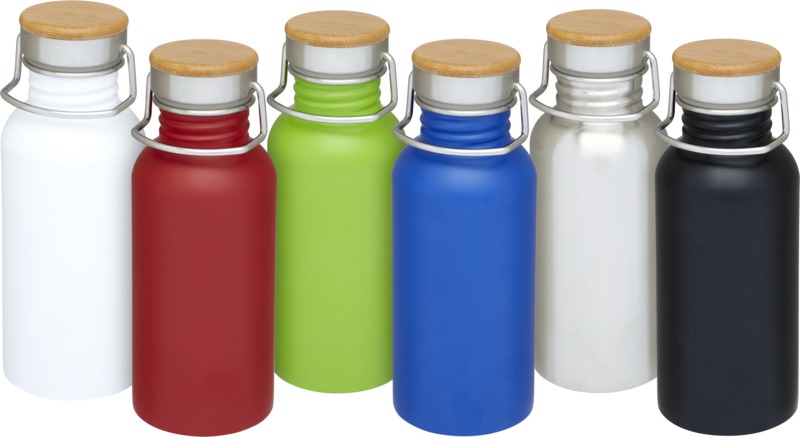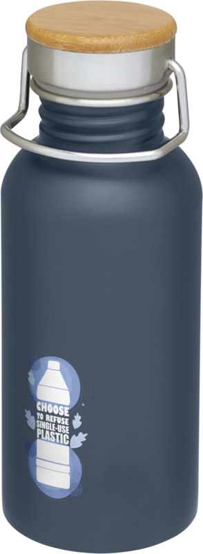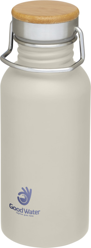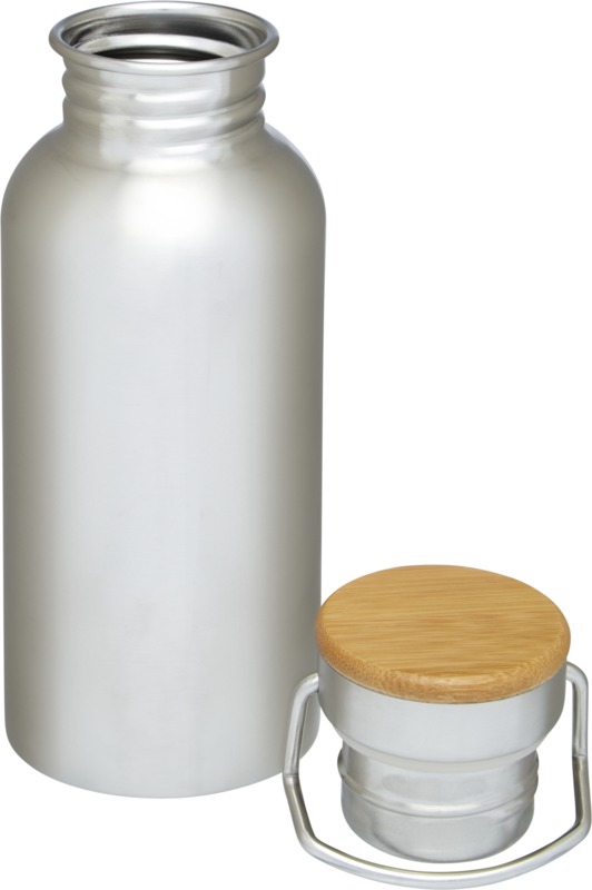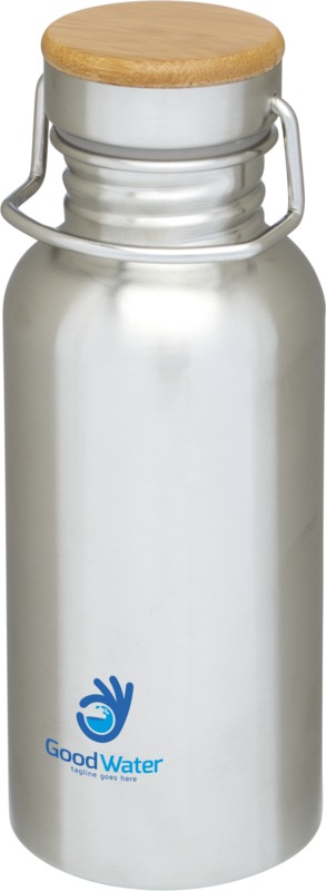 Display your brand effectively with the Thor 550 ml water bottle. Made from single-walled stainless steel, it suits everyday use. The screw-on lid features a natural bamboo top and a built-in handle for easy carrying, making it practical for any promotional activity.