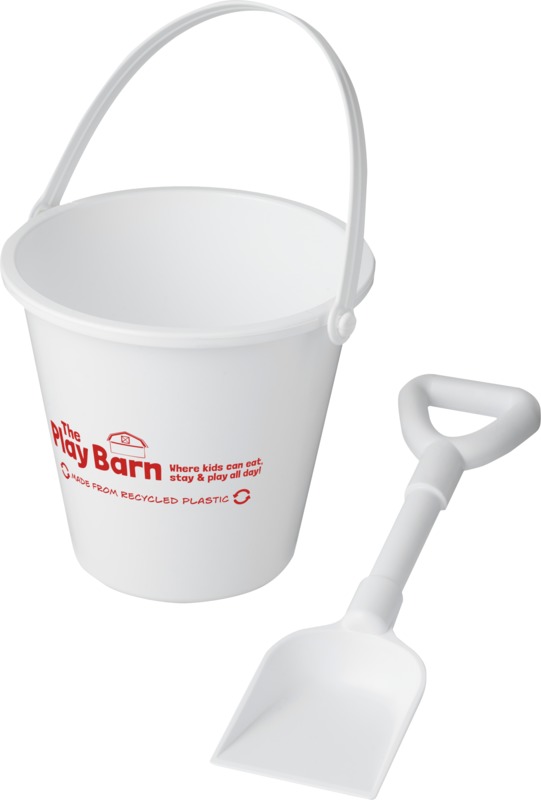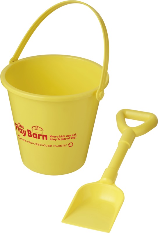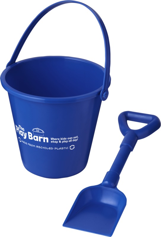 Represent your brand responsibly with the Tides recycled beach bucket and spade set. Made from post-consumer recycled plastic, this product has a unique speckled finish. The 1250 ml bucket and matching spade are ideal for beach fun while showing your brand’s commitment to the environment.