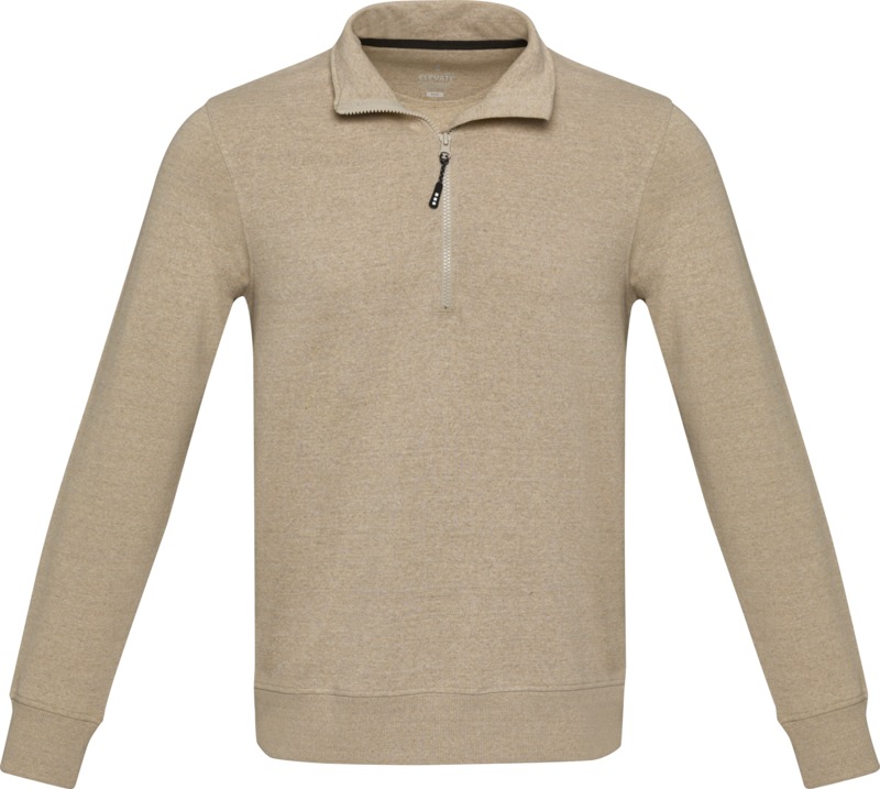 This Tin unisex Aware™ recycled quarter zip sweater offers comfortable, eco-conscious apparel for promotions. Made from 280 g/m² 50% recycled polyester and 50% recycled cotton, it features a quarter-zip design for easy layering. Cyclo® recycled fibres reduce dye demand, making this a practical choice for your brand.