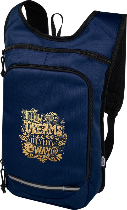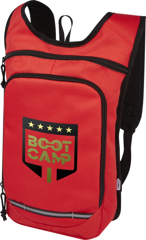 This Trails GRS RPET backpack offers a responsible choice for outdoor adventures. It features a 6.5L capacity with zippered pockets for organising belongings. Made from 100% GRS recycled, water-repellent fabric, it provides a practical item for everyday use.