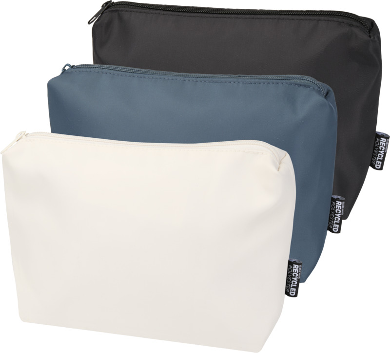 This Trip Aware™ recycled travel toiletry pouch is a practical choice for general promotional campaigns and corporate gifting.