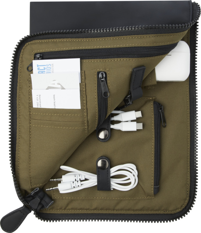 The Turner GRS recycled organiser clutch makes a practical choice for general promotional campaigns, offering a sustainable way to keep small items neat.