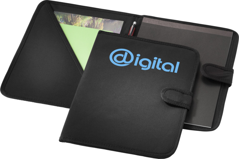 Carry documents and notes professionally with this University A4 portfolio. It features a secure hook and loop closure to keep contents safe and includes a 20-page lined notepad. This item is practical for general promotional use.