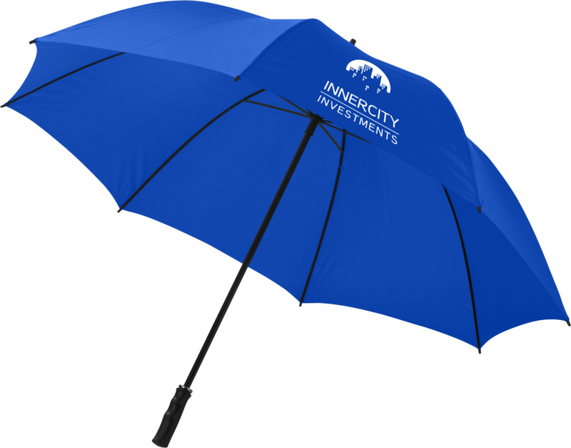 The Zeke 30" golf umbrella is a practical item for general promotional campaigns, offering ample coverage during wet weather.